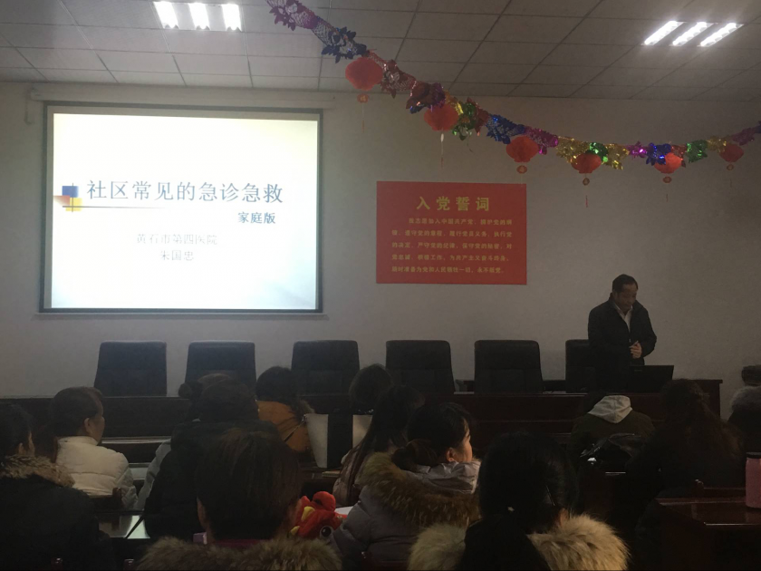2月7日下午,医养集团市四医院副总经理朱国忠亲自带领相关科室专家,分别到铁山冶矿路社区和鹿獐山社区,进行常见急救知识和春季传染病防治知识宣讲,帮助社区群众度过一个健康祥和的春节。