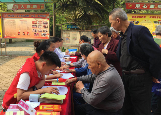 (四医院医务人员为老年人测量血压血糖)