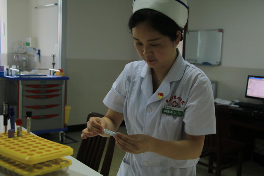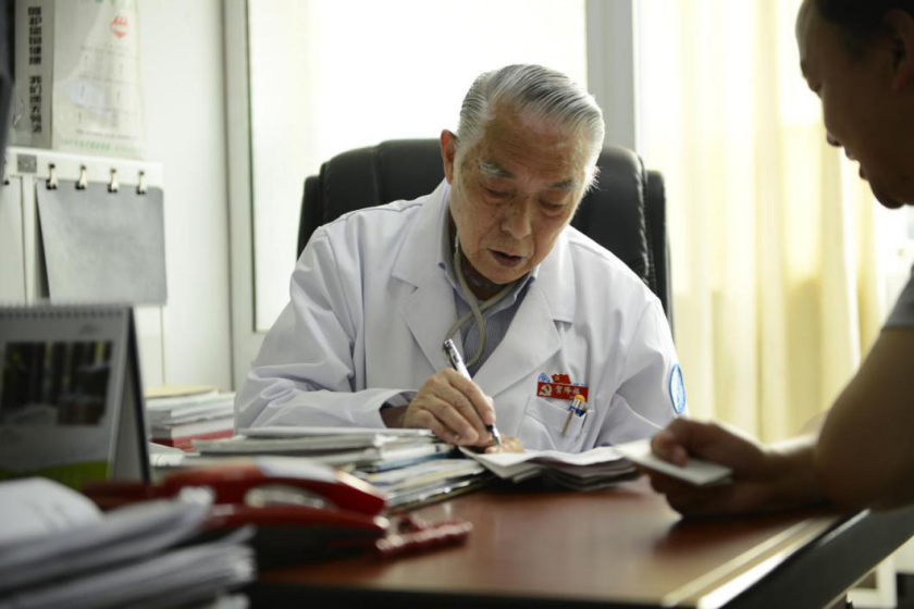 医养集团市五医院消化内科首席专家贺降福佩戴党徽坐门诊